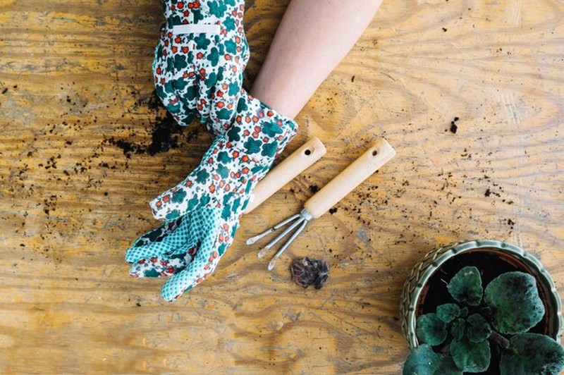 Nepoužívejte rukavice, které obsahují olejové nebo chemické skvrny u práce s potravinami. U citlivých rostlin dbejte na to, aby materiál nepouštěl vlásek nebo barvu, která by mohla uškodit kořenům.